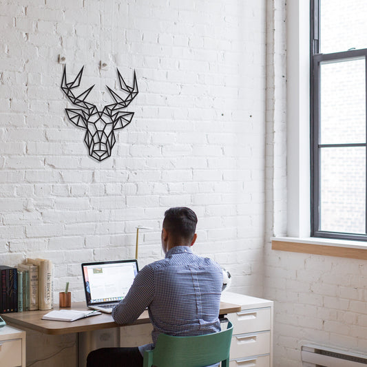 Deer Head Wall Decor Geometric Stag Head Wooden Laser Cut Wall Art